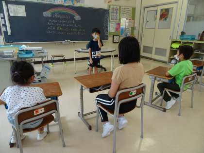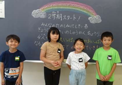 始業式の後の学級活動で、夏休みの思い出を聴き合いました。家族みんなでの花火や友達の家に遊びに行ったこと、友達との水遊び等の話が出ました。