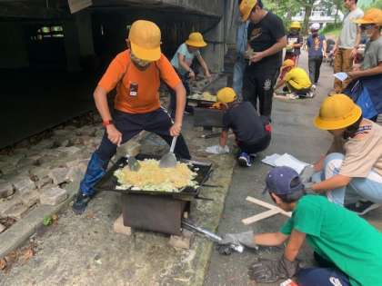 理科の学習を生かして、上手に火をつけることができました。焼きそばのいい匂いがしてきました。
