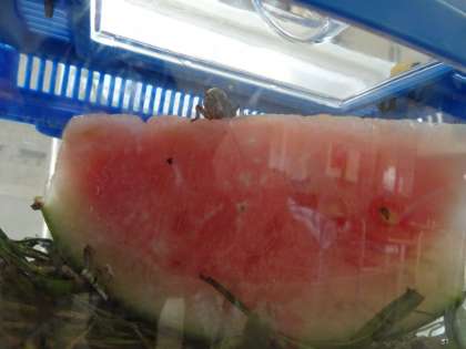 しかし、いつ見ても、スイカをおいしそうに食べているコオロギです。