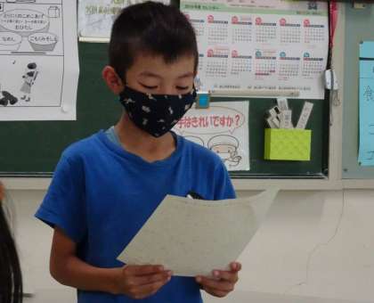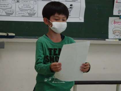 給食の時間に、「できることをふやそう 自分のよさをみつけよう」の発表をしました。小見っ子陸上に向けて、ソフトボール投げややまびこ持久走、鼓笛隊でがんばりたいことを話しました。