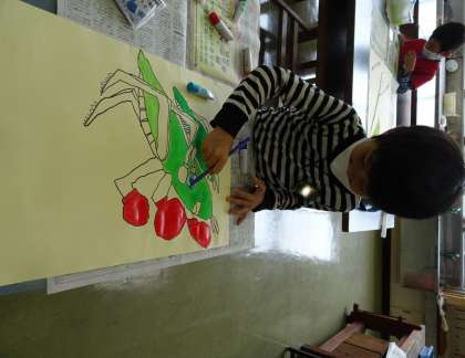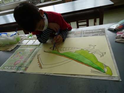 それぞれの虫さんに合う色をつくって、ていねいに塗っています。
