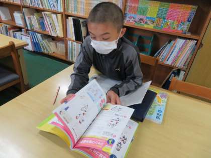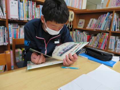 みんなで楽しく過ごすために(6年国語科) 公開日 2020/10/08 更新日 2020/10/08 5・6年生 「みんなで楽しく過ごすために」の学習では、議題を決めて話合いをします。 今日は議題に対する自分の考えをもつために、図書室で調べ学習をしました。