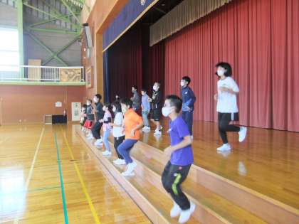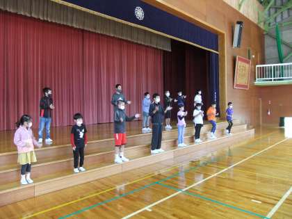 今日のボディーパーカッションの練習は、ステージで行いました。チームでリズムが揃うよう意識しています。動きや表情も工夫して、楽しいステージ発表になるようがんばります。