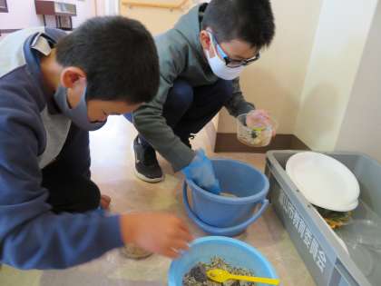 校外学習(5・6年生) 公開日 2020/10/16 更新日 2020/10/16 5・6年生 5・6年生は総合的な学習の時間に「小見」の歴史について調べています。 今日は、校区にある大山歴史民俗資料館に行って、資料館の方の話を聞いたり、資料を調べたりしました。 最後にはジオラマ製作も行いました。