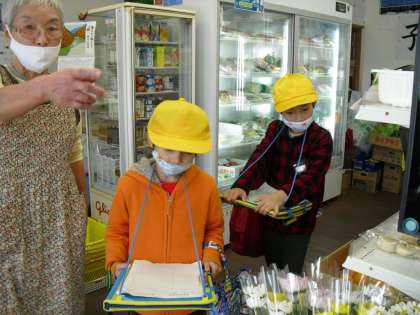2軒目のお店では、たくさんの食料品や日用品を見せていただきました。