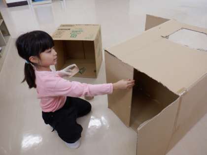 つくっていくうちに、「もっと広くしたい」「車をつくってみようかな」など、どんどんアイディアが生まれ、友達と協力しながら活動を進めています。