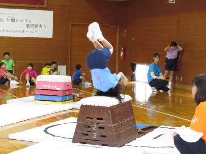 今日は学習発表会でした。オープニングは「小見っ子雑技団2024」です。