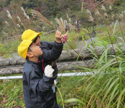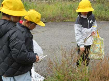 秋が深まってきました。1・2年生は、生活科の時間に、学校の近くの秋を見つけに行きました。