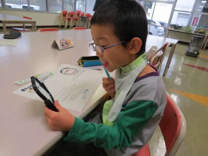 カラーテストで歯のでこぼこしているところや、歯と歯ぐきの間に磨き残しがあることがよく分かりました。その後、歯ブラシの使い方を工夫してきれいに歯を磨いていました。