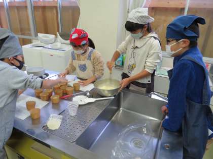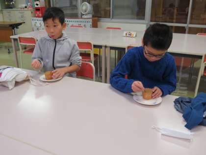 餃子の皮でエッグタルト作りをしました。