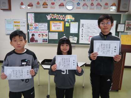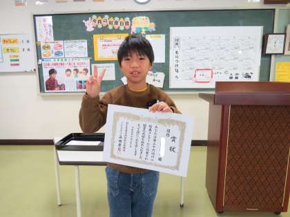 夏休みや2学期に作品応募等で頑張った小見っ子の受賞伝達がありました。運動だけでなく文化的な活動にも一生懸命取り組んでいますね。