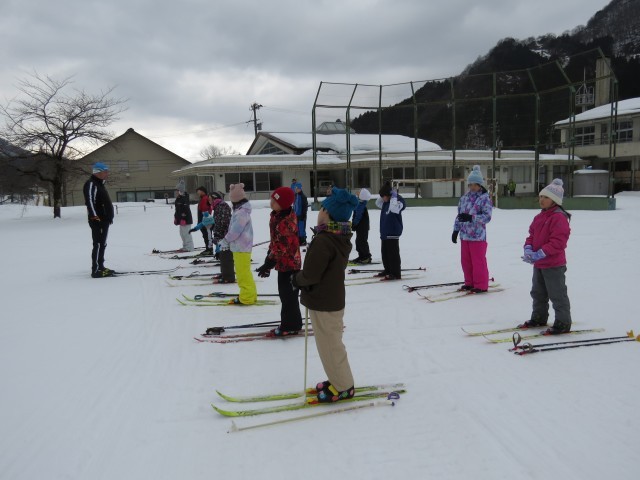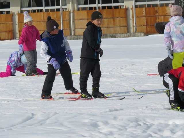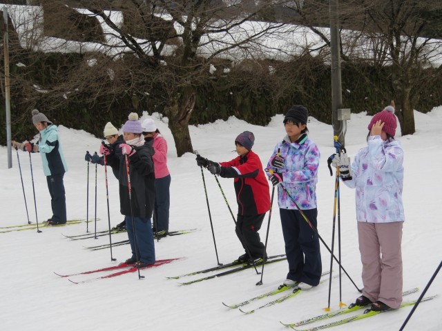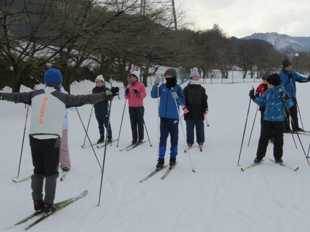 福沢小学校のみなさんといっしょに、小見小学校のグラウンドでクロスカントリースキーをしました。