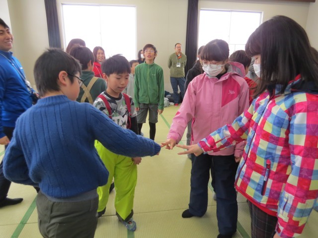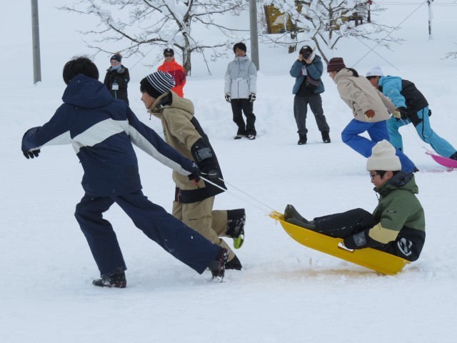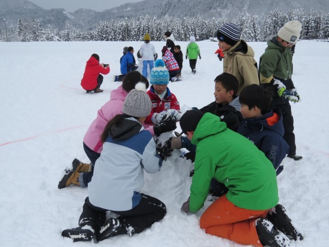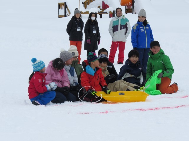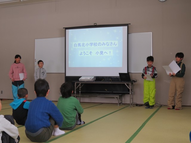 小見小学校の学校紹介クイズや簡単なゲームをしたり、親雪活動で雪上運動会をしたりして楽しみました。