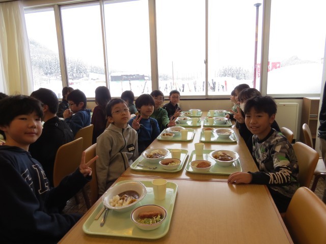 昼食に美味しいカレーを食べた後はそれぞれの班に分かれてアルペンスキーをしました。