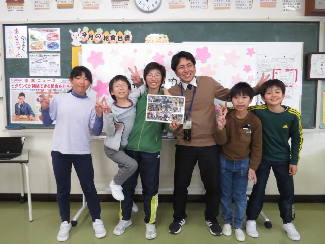 元気もりもり委員会が企画した卒業お祝い会食がありました。卒業生のリクエスト曲の放送や、思い出を振り返るインタビューがありました。委員会からのサプライズプレゼントもあり、残り少ない6年生との給食の時間を楽しみました。