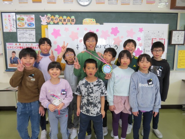 1年生が代表してメダルを渡し、これまでの感謝の気持ちを伝えました。
