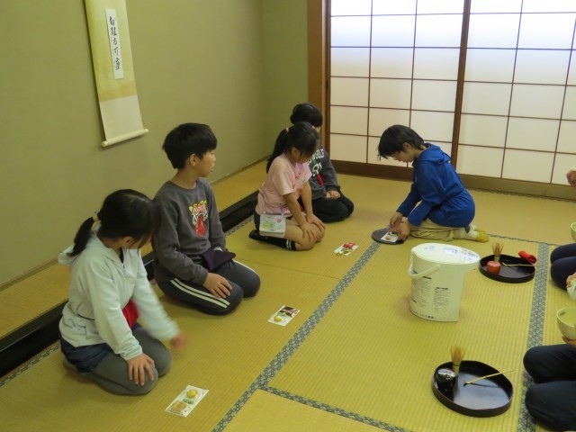 お茶のいただき方やふくさのたたみ方など、茶道の基本を教わりました。