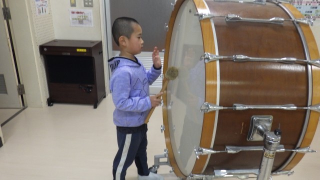 2年生は、音楽で「たぬきのたいこ」を学習しています。先週に引き続き、曲に合わせて三拍子のリズムをいろいろなたいこで演奏しました。今日は、体よりも大きい大太鼓に挑戦しました。