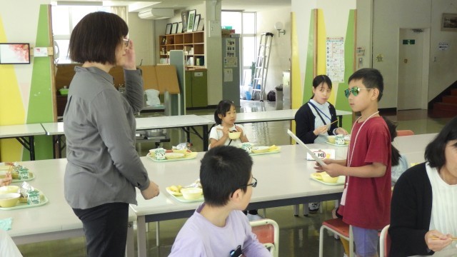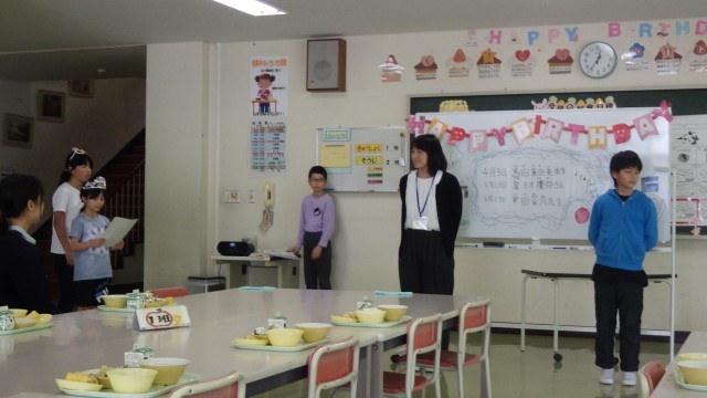 今日は、4・5・6月の誕生者のお祝いをしました。みんなから誕生日の歌を贈った後、元気もりもり委員会からのインタビューに答えてもらいました。