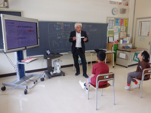 5月27日(火)の3時間目に、5年生は富山市教育センターの谷本先生をお招きし、「情報モラル」について学習しました。