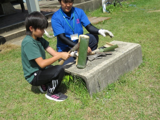 3~6年生は、12日(木)、13日(金)に呉羽青少年自然の家での宿泊学習を行いました。1日目前半では、森の中を歩きながら目標の木を探す「森の木オリエンテーリング」、切り出した竹からオリジナルの器を作る「クラフト」に取り組みました。呉羽ならではの自然を体いっぱいに感じながら楽しく活動しました。