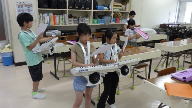 今年度も運動会の開会式で演奏する鼓笛隊の楽器担当が決まり、早速、小見っ子が自主的に休み時間に練習をしていました。楽譜を見てリズム打ちしたり、楽器を出して音を確認したりする姿が見られました。