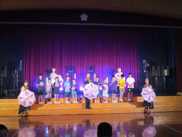 迫力ある歌声とダンスに、子どもたちは目を輝かせ、舞台の世界に引き込まれていました。普段の学校生活では味わえない、貴重な芸術体験となりました。