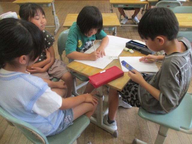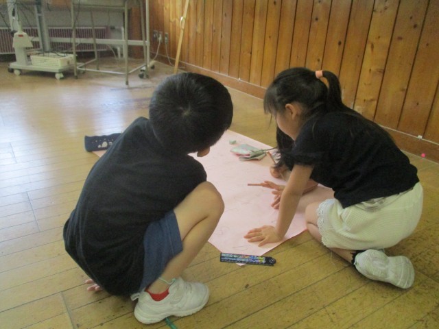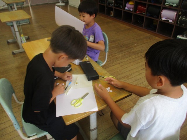 今日の集会準備では、出し物のチームごとに協力して、ルールを考えたり道具を作ったりしました。
