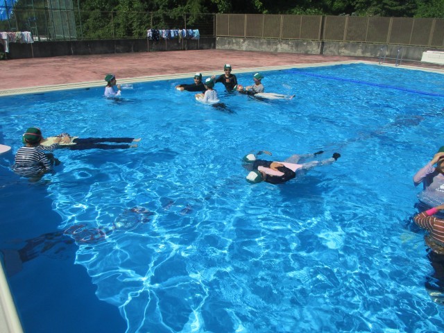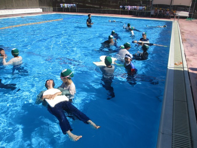 1学期最後の水泳学習では、着衣泳を行いました。着衣泳とは、服を着たまま水に落ちた際に、水中で安全に浮いたり、移動したりする方法を学ぶ訓練です。もしもの場合は浮いて待つこと、身近なものの浮力を利用すること等を学びました。夏休み中に水難事故にあわないように、一人一人が気を付けましょう。