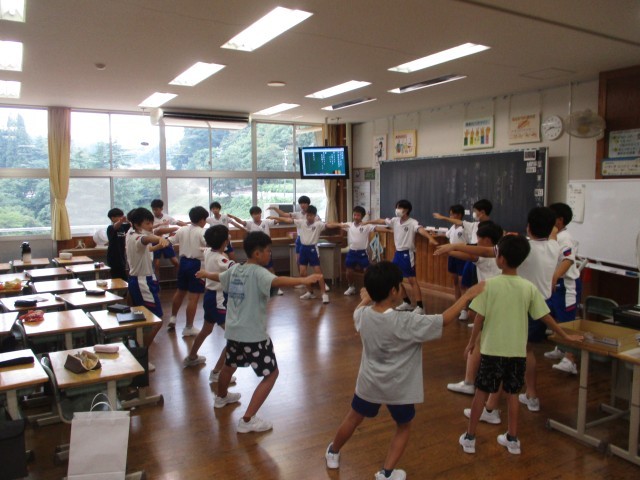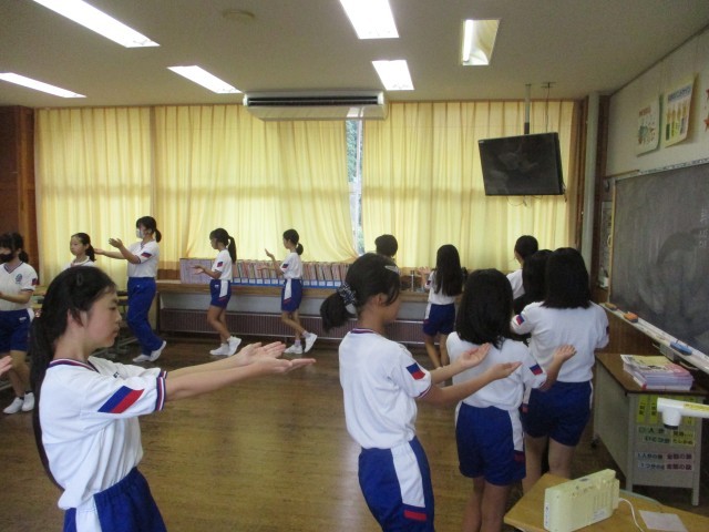 おわらが近付き、学校でも伝統文化に親しもうと輪踊りを行いました。