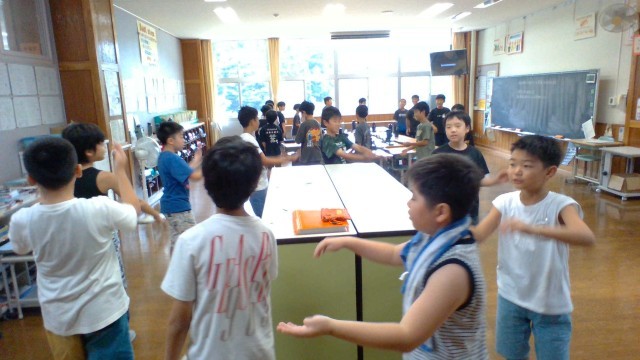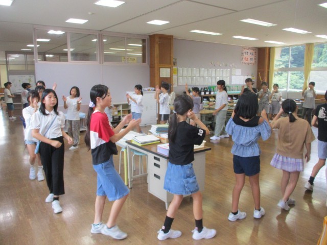 朝の時間に、おわらの練習を始めました。一つ一つの動きを確認しながら、丁寧に踊っています。