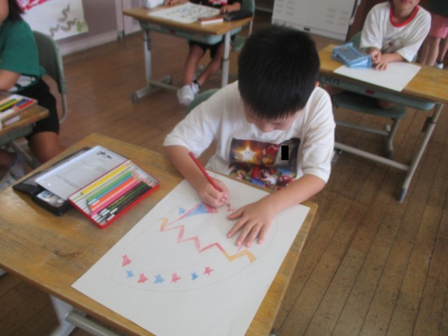 2年生は、図画工作科の時間にふしぎなたまごの絵を描きました。