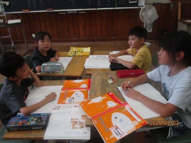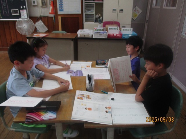 国語科の学習では、メモを取りながら話を聞く活動をしました。