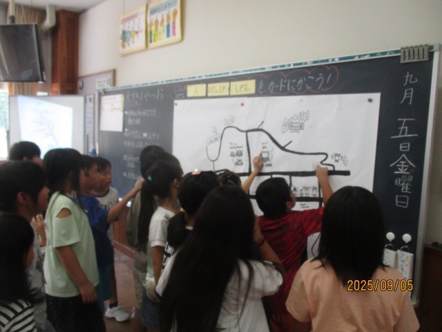 生活科の学習では、自分たちが住む八尾の好きなところについて話し合いました。
