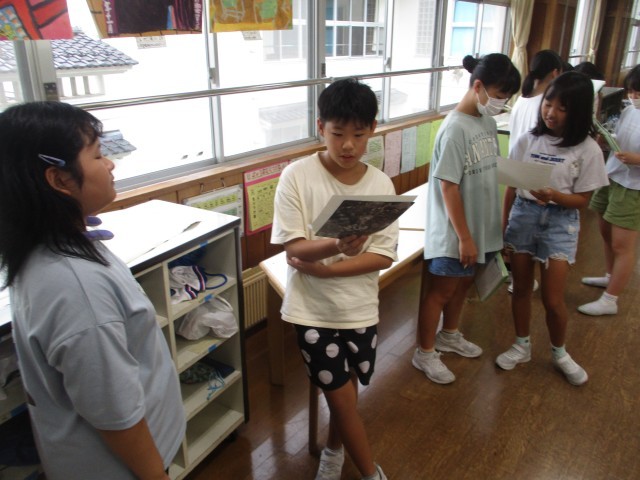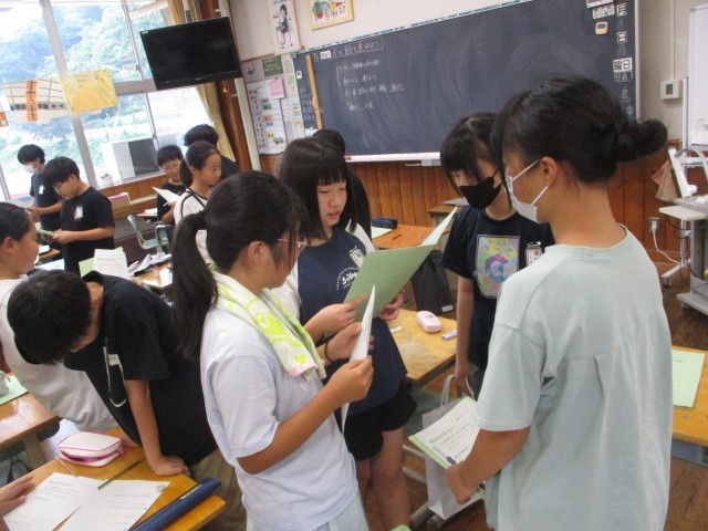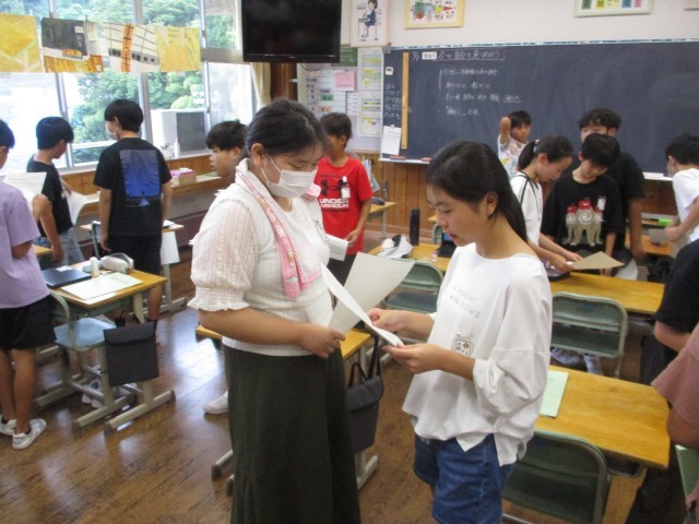 総合の時間に、夏休みに行ったインタビューを振り返りました。友達と交流しながら、将来なりたい自分の姿について語り合い、夢をふくらませました。