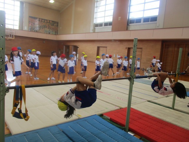 体育科の学習では、鉄棒遊びを行っています。