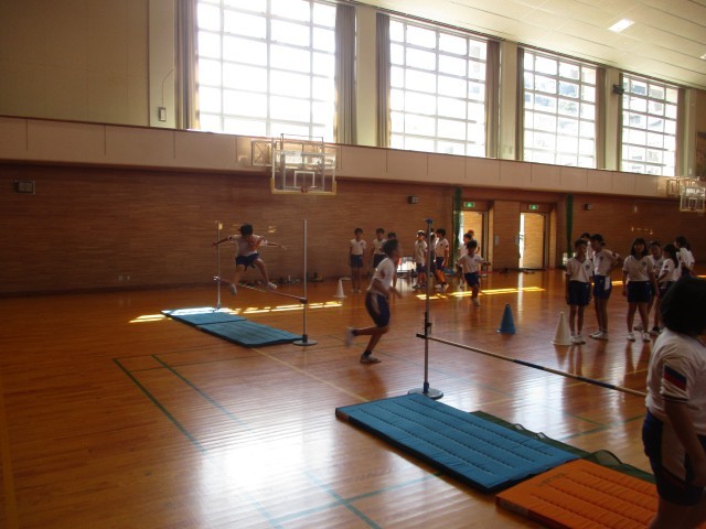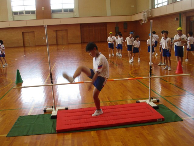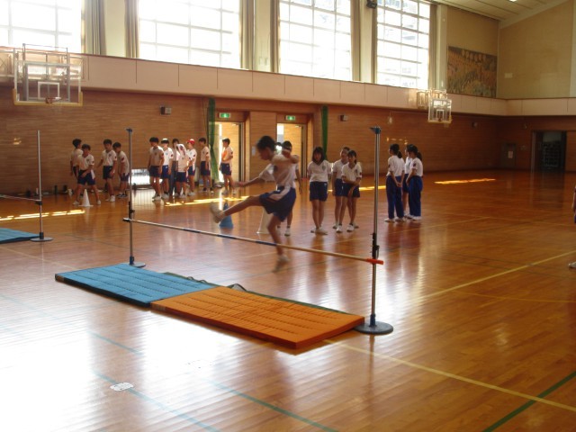体育では走り高跳びに挑戦しました。助走や踏み切りのタイミングを工夫しながら、何度もチャレンジしています。