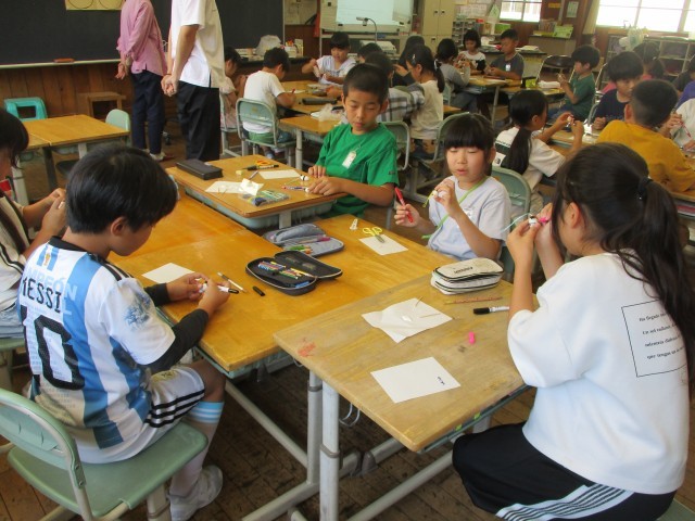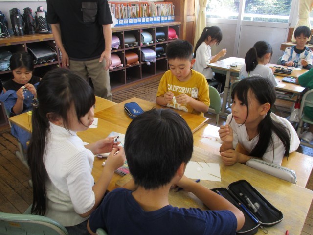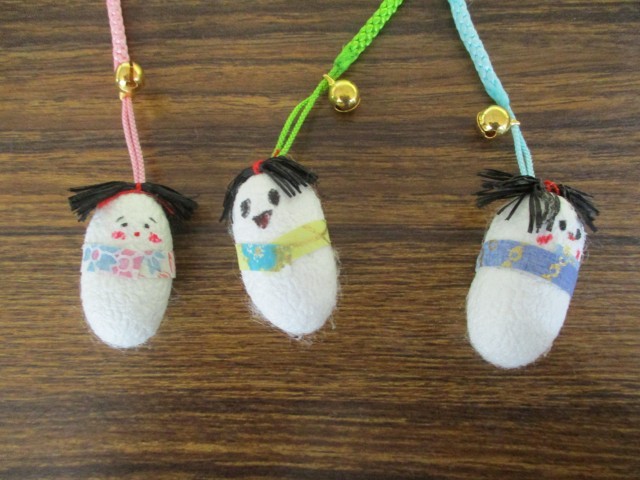今日は、フォーレスト八尾会の方に来ていただいて、1学期に育てた蚕のまゆを使ってまゆ人形を作りました。