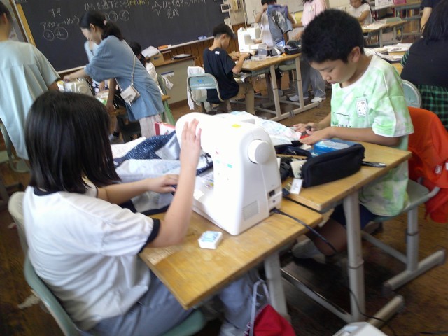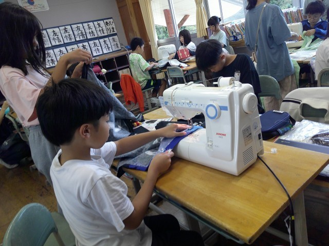 今日はミシンで縫う姿やアイロンを使う姿、紐を通す姿がありました。