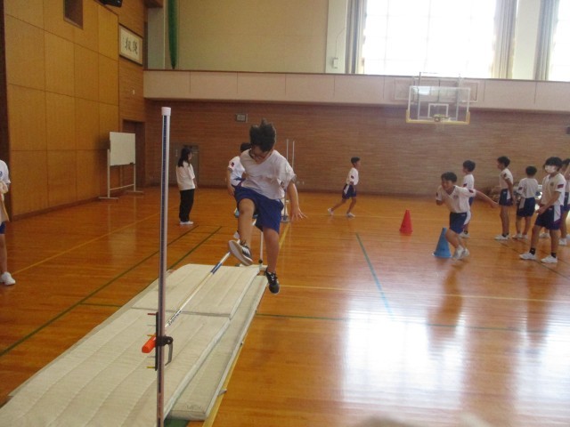 体育で走り高跳びに取り組みました。今回は2回目の学習です。前回よりも助走や踏み切りの工夫が見られ、バーを越えられた子も増えました。記録の伸びを実感しています。