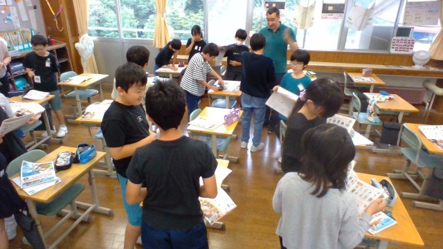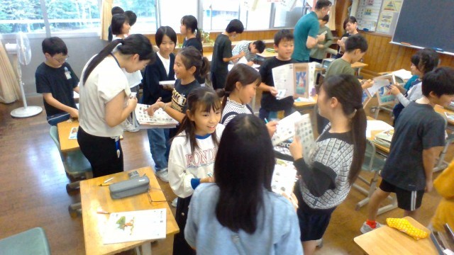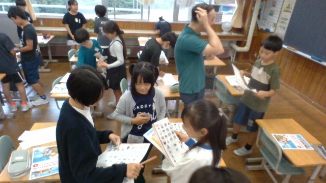 学校や動物園等、地図上にあるものの場所を英語で伝える練習をしました。ゲームを通して、何度も英語表現に親しんでいます。