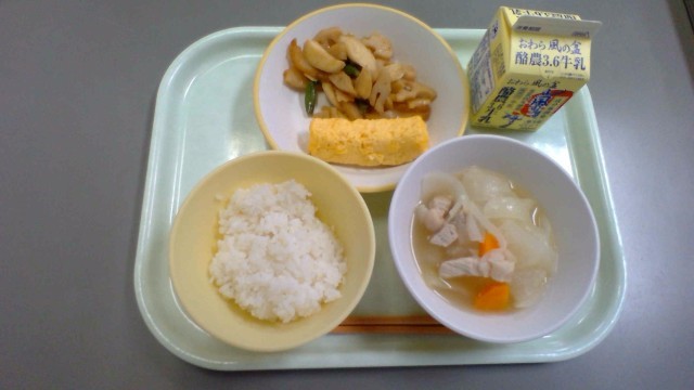 今日は、きときとランチでした。きときととは、富山県の方言で、「新鮮な」や「ぴちぴち」という意味を表します。今日のきときとの食材は、「まこもたけ」でした。給食の「まこもたけ」は、氷見市マコモタケ組合の方々が作っておられます。富山県のきときと食材を、おいしくいただきました。