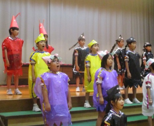 お客さんがいる中での発表は初めてで緊張した様子でしたが、スイミーのお話の楽しさを伝えるために、元気に役を演じました。