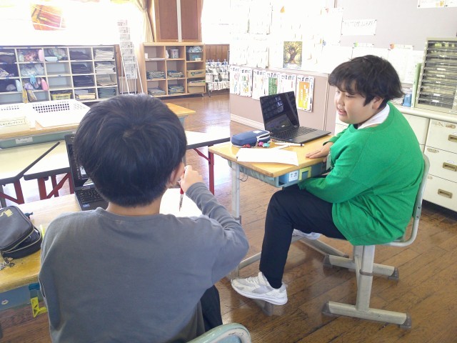 「もっと6年生の目当てを大きくした方がいいかな?」「遠くからでもこの文字見える?」試行錯誤しながら取り組んでいました。