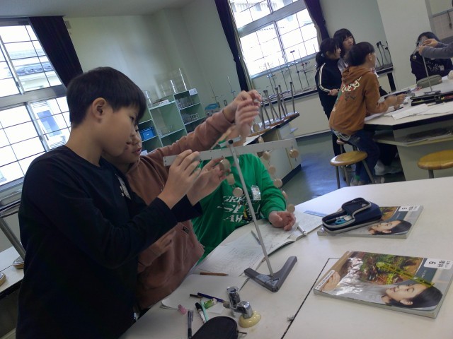てこを使用したときの力の大きさを表すために、実験用てこを用いて実験をしました。
