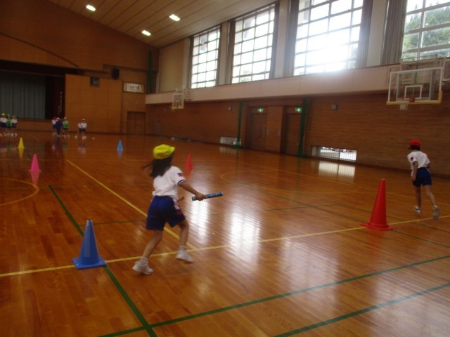 バトンパスをする順番や、コーンの回り方を工夫してタイムが縮まるようにがんばっています。