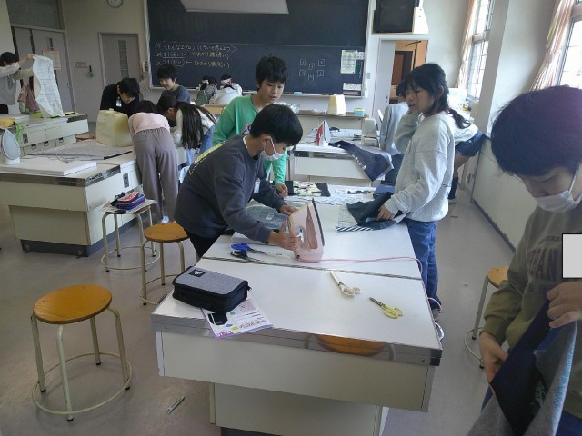 エプロンづくりを始めました。布を裁ったり、アイロンをかけたりして丁寧に作業を進めました。
