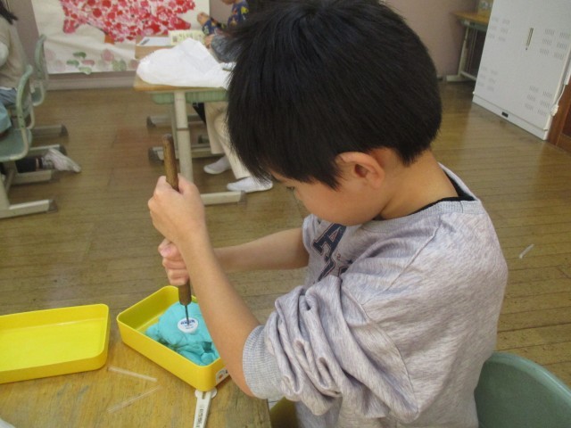 ペットボトルのキャップにきりで穴を開けたり、竹串の長さを調節したりするのが難しかったようです。