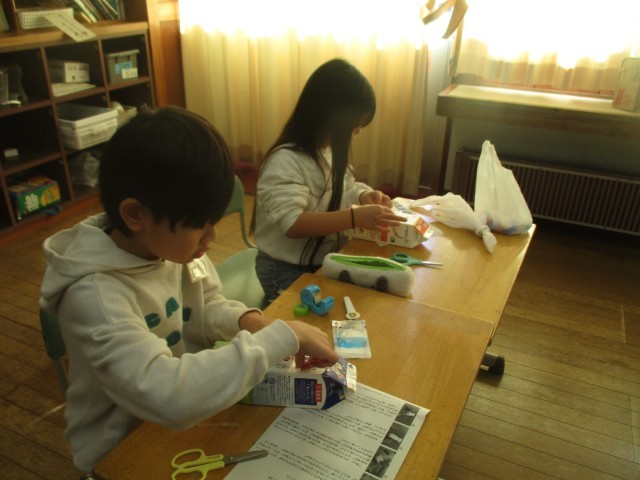 生活科の学習では、身近な材料を使って動くおもちゃをつくっています。