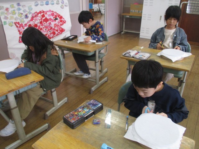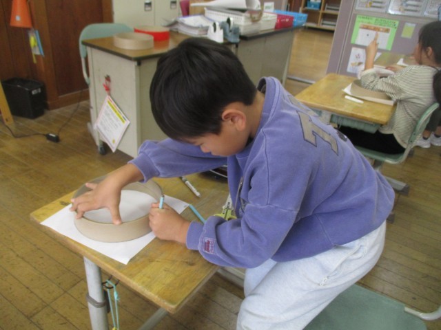 図画工作科の時間に、音楽科の学習で使う太鼓をつくりました。